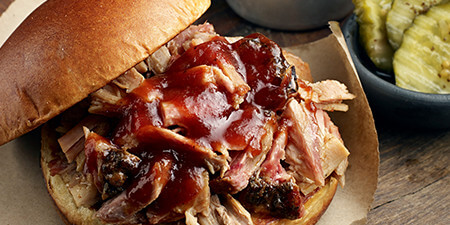 (690 Cal.) Award-winning, slow-smoked chopped pork topped with Rich & Sassy®.